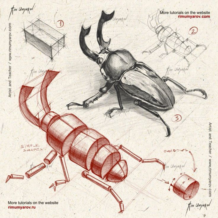 Below are some examples of forms simplified into blocks and cylinders. Imagining the forms as boxes can help one see planes.